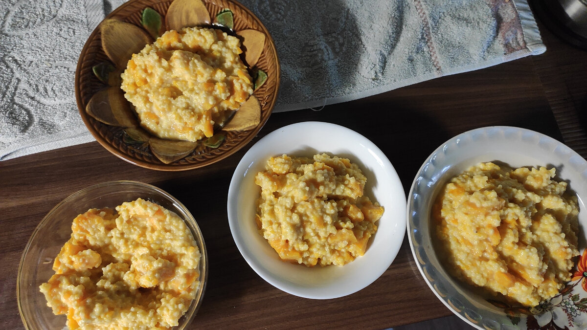 Пшенная каша с тыквой на молоке + горячие бутерброды