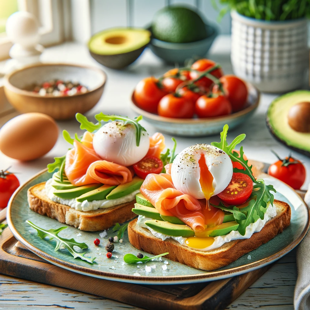 Пошаговый рецепт приготовления тостов с яйцом пашот и лососем Ингредиенты: