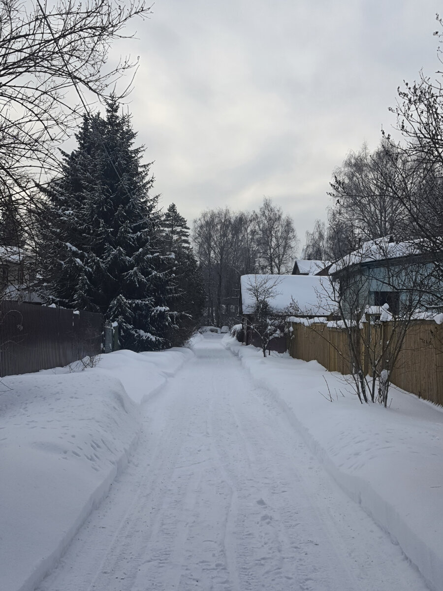 С утра проснулись, позавтракали и занялись своими обычными хозяйственными делами. Я загрузила стирку и посудомойку, а супруг пошёл откапывать машину. Я поскакала, как сайгак до папы, принесла ему кл@зму, а то он бедненький измучился. От еды отказывается, прямо тревожно за него. Папа заверил меня, что если что вдруг, то моментально мне позвонит. Что я буду делать не знаю, буду решать проблемы по мере их поступления, и помчалась на дачу. По дороге заехали в дискаунтер "ДА!", где мы обычно покупаем овощи, хлеб, воду, минералку и томатный сок, а также покупаем иногда свиные рёбрышки или рульки. В этот раз купили капусты, моркови, лука, рёбрышек, зелени, томатной пасты, хлеба, гороха для супа и воды. Картошку и свёклу не стали покупать -- очень грязные с засохшими комьями земли. Ехали и гадали -- почищен ли снег на дачной аллее. Оказалось, что почищен. Насыпало очень много. Больше обычного. За воротами около метра. Пришлось прорыть траншею, чтобы просто подойти к калитке. В саду примерно ок
