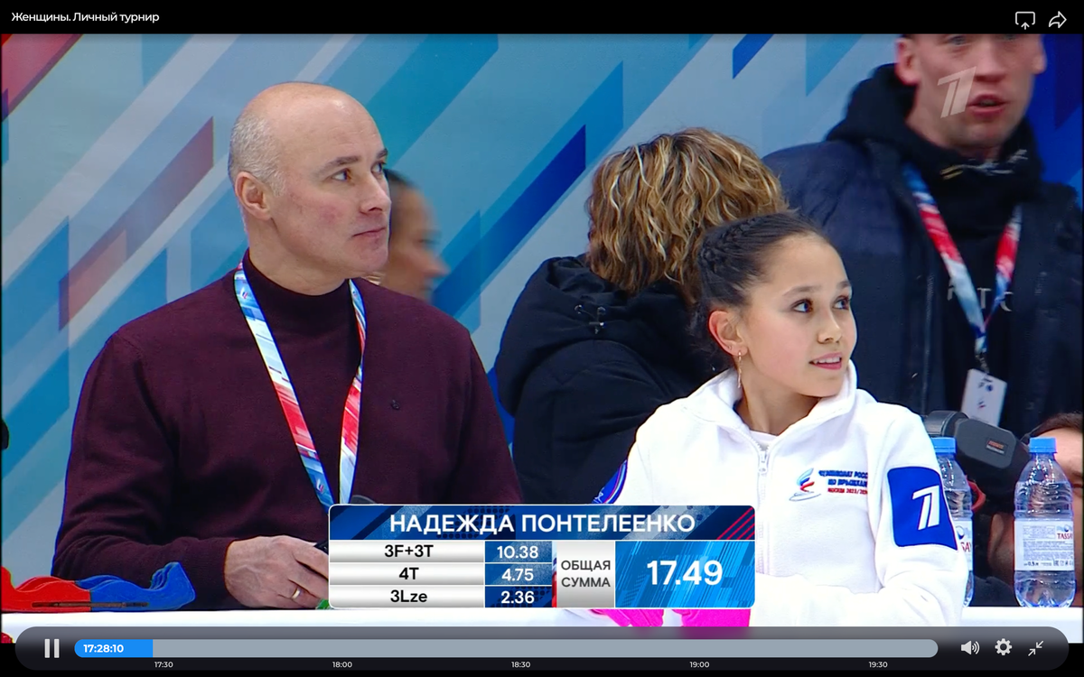 Фактически в женской категории был юниорский чемпионат, так как самой старшей участнице 17 лет. Главных звёзд сезона фактически и не было - только Аделия и Софья. Но было интересно посмотреть на подрастающих девочек, которые пока выступают по юниорам и прыгают сложные прыжки. 1/4 В четвертьфинале надо исполнить два сольных и один каскад. Если есть время, можно переделать. Понтелеенко - Петросян Надя 3F+3T - чисто 4T - падение 3Lz - падение 4Т - падение Баллы: 17.49 Аделия 4Т+3Т - чисто 2F вместо 4F 2F вместо 4F 3F - чисто 4Т - чисто Баллы: 34.18 Морозова - Кольцова Вика 3Lz+3T - чисто 3Lz - чисто 3F - чисто 3F - чисто Баллы: Катя 3Lz - чисто 3Lz+3T - чисто 3F - чисто 3Lo - чисто 3Lz+3T - чисто Баллы: 25.66 Мильто - Костылева Диана 4S+2А - с ошибкой 4Sq - приземление с недокрутом, но визуально чисто 3Lz - чисто 3А - падение 3А - падение Баллы: 27.78 Лена 4S+3T - чисто 4S - чисто 3Lz - чисто 3Lz - чисто 3Lz - чисто Баллы: 37.80 Муравьёва - Принёва Соня 3А+3Т - чисто 3А - чисто 3Lz - чи