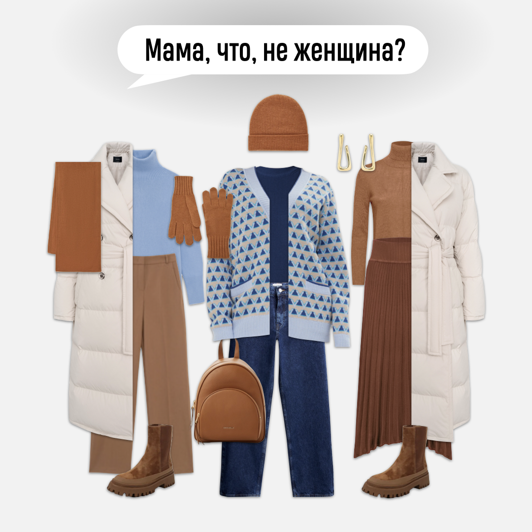 И заранее подготовили светлую и женственную – тоже зимнюю❄️ – но менее практичную (о, ужас! Светлый пуховик!). Но вы нас переиграли: почти никто не написал «Почему опять одни брюки? Почему такие мрачные цвета?»
