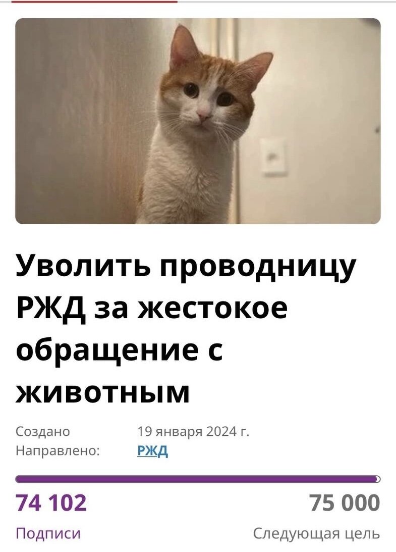 Несколько дней назад кот Твикс возвращался с хозяином в Санкт - Петербург. В поезде животное выбралось из переноски, его увидела проводница и выкинула из вагона на тридцатиградусный мороз. Спустя 7 дней кота нашли мертвым. Скорее всего его истерзали собаки. Случившееся получило огласку Появилась петиция с требованием уволить проводницу, выбросившую кота Твикса из поезда, её подписало 74 000 тысячи человек В тексте обращения граждане требуют уволить проводницу за нарушение должностных инструкций и жестокое обращение с животными. Также имеется отдельная петиция, в которой предлагается возбудить на женщину уголовное дело. В РЖД выразили сожаление о произошедшем. Ответственность проводницы Материальная ответственность Итак, для начала нужно понимать, что нарушила проводница. Забегу вперед. Указаний о том, что конкретно делать в случае, если в вагоне будет найдено домашнее/дикое животное я не нашел. Возможно, есть какие внутренние документы. Но есть общие правила Перевозка живот