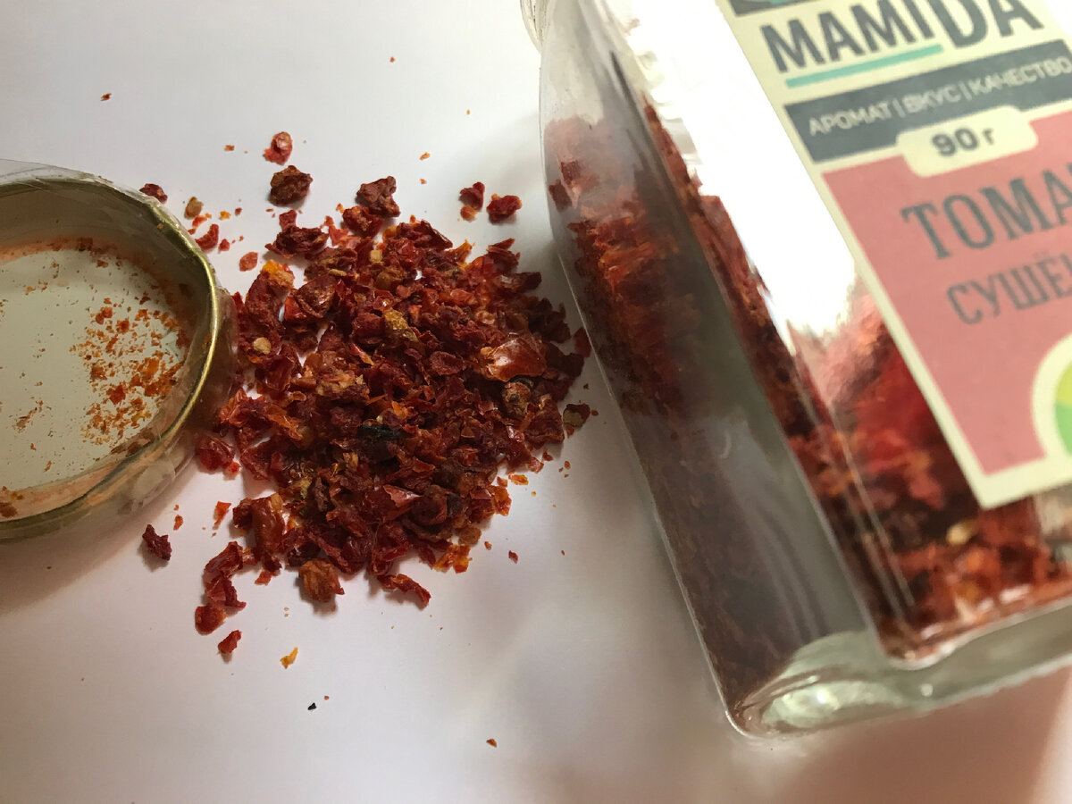 Не так давно купил и не пожалел. Свежайшие сушеные помидоры. Конечно, чуть дороже, чем в рассыпную без упаковки, но стоят того. Рекламы тут нет, у меня подписчиков единицы. У этого производителя все специи в аккуратных баночках из стекла и очень качественные. Делал сам песто для спагетти. Высушенный сыр, сухой базилик, зелень укропа и кинзы, томаты сушеные и оливковое масло. Вот эти томаты и дали основную свежесть для песто. Получилось отлично! Сочный свежий вкус!