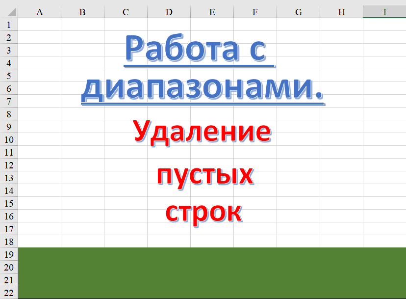 Приветствую всех читателей! В данной статье мы рассмотрим процедуру "УдалениеПустыхСтрок", предназначенную для удаления всех пустых строк в активном рабочем листе. Эта процедура отличается хорошей эффективностью, так как она не проверяет каждую строку, а сканирует только те строки, которые входят в так называемый "используемый диапазон" (я заполнил диапазон "A1:F2001" случайными целыми числами от 1 до 10 и создал случайные пустые строки в этом диапазоне). Этот диапазон определяется свойством UsedRange объекта Worksheet. Подробное объяснение процедуры в конце статьи, а сейчас в общих чертах. Итак: Первый этап - определение номера последней используемой строки и присвоение этого значения переменной "ПоследняяСтрока". Это довольно сложная задача, так как используемый диапазон не обязательно начинается с первой строки. Таким образом, значение "ПоследняяСтрока" вычисляется путем добавления количества строк используемого диапазона к номеру первой строки текущего диапазона и вычитается 1. В д
