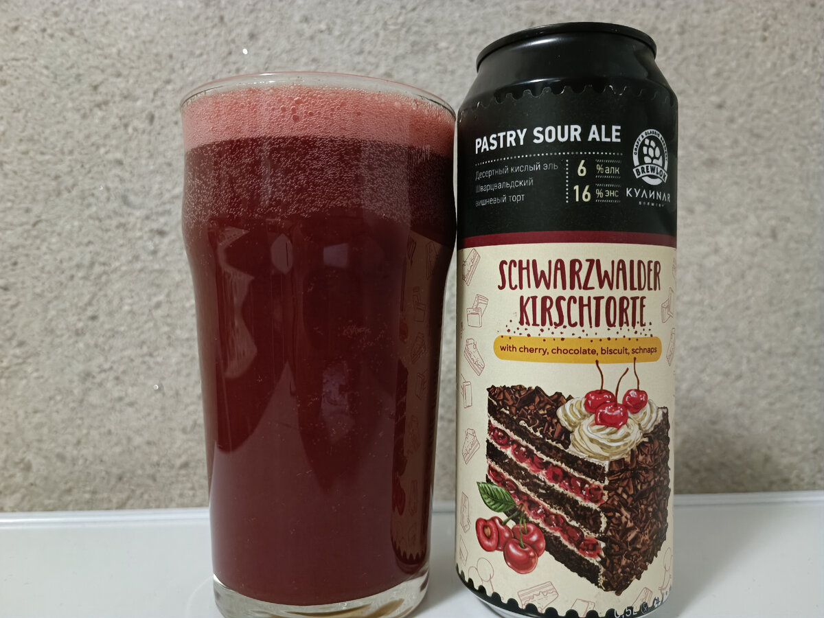 Сегодня к меня а бокале плод коллаборации двух пивоварен, а именно Брюлок (Воронеж) и Кулинар (Москва). Смузи построен саур эль, он же жидкий тортик, коими собственно Кулинар и славится. Описание сорта из антапта: Давным давно для приготовления этого торта жители Германии использовали Киршвассер, своего рода настойку из местных сортов вишни или черешни и шнапса. Именно тем вишневым киршем пропитан наш десерт. Что ж, давайте пробовать. Пиво (если его всё ещё можно так называть)) насыщенно вишнёвого цвета с красивой небольшой пенной шапкой. В аромате шоколад и чернослив. Вкус реально напоминает шоколадный торт, с вкраплениями вишни, чернослива и немного орехов. Есть некая ликерность, видимо от шнапса. Насыщенно, кисло-сладко. Прекрасный баланс. Торт пьяная вишня удался на славу. Я не особо фанат подобной стилистики, больше для жены брал, но остался очень доволен, что не прошёл мимо. 9/10 Моё мнение не претендует на истину в какой бы то ни было инстанции, это всего лишь частная точк