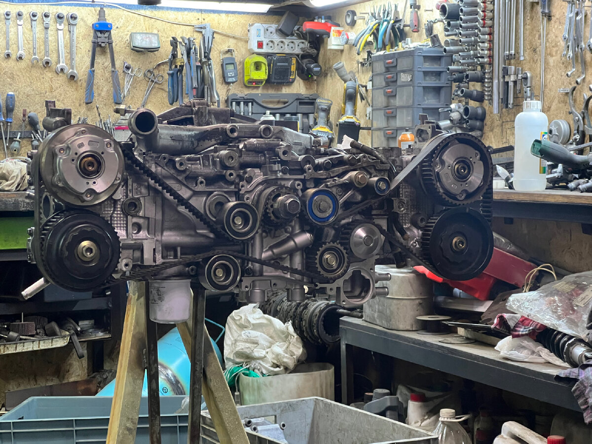На субарячьем коленвале питание 2 и 3 шатуна осуществляется со средней, третьей коренной шейки. Поэтому завоздушивание левого полублока приводит к провороту шатунных вкладышей второго и третьего цилиндра. Так как при передаче крутящего момента двигатель на подушках немного «скручивается» в противоположную от вращения сторону - приподнимается именно левый полублок, подушка которого работает на растяжение, в то время как правая подушка двигателя работает на сжатие. Как следствие - левый полублок получает больше воздуха чем правый, так как по переднему каналу воздух перетечет в самую верхнюю точку - в левый приподнятый полублок. В связи с тем что на АТ нагрузка более плавная, блок практически не возвращается в горизонтальное положение, как в случае с размыканием сцепления в процессе переключения передач на механике. Поэтому на автомате при изменении количества оборотов во время переключении передач (а от обрротов меняется и давления в масляной магистрали) левый полублок практически всегда находиться выше правого, за исключением моментов торможения двигателем. А единственная возможность воздуха выйти из масляной магистрали - это через вкладыши или гбц. А так как гбц потребляют значительно меньше масла чем коренные шейки - вкладыши корней и получают на себя весь этот воздушный «тромб». На автомате все шишки летят на левый полублок и 2-3 цилиндр, на механике - чаще четвертый, хотя по большей степени зависит от режимов эксплуатации. Разумеется прочность масляной пленки напрямую зависит от качества масла и периодичности его замены, но от «паленого» масла не застрахован никто - поэтому это лишь вопрос времени.