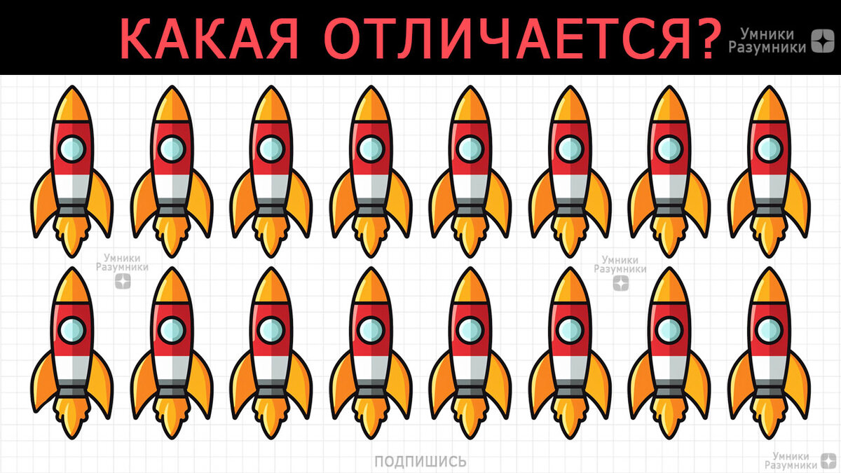 Сможете найти ту самую, особенную ракету? Включите свою внимательность на максимум и попробуйте разгадать эту головоломку! 🕵️♂️