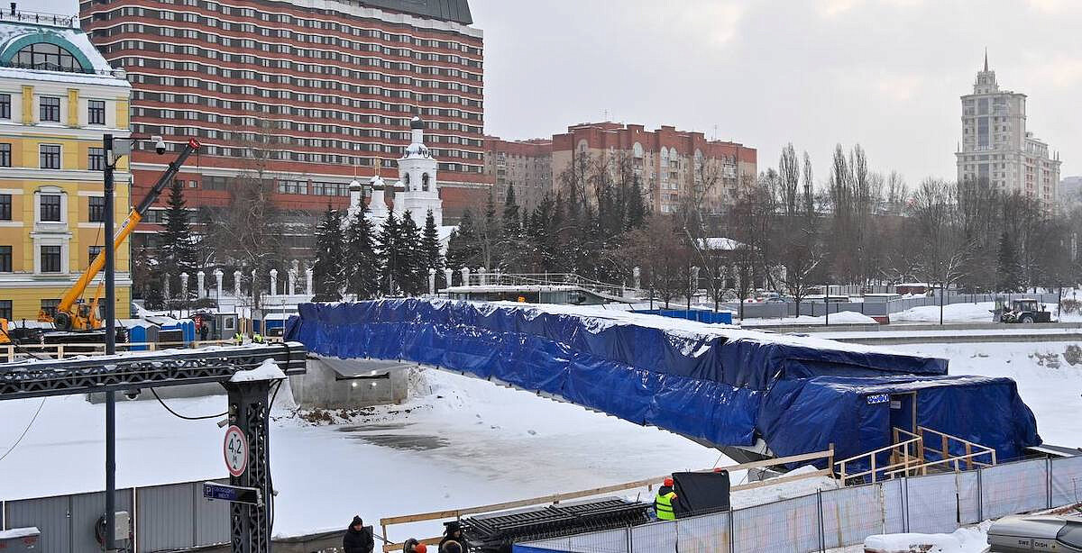 Сам мост привезли в центр столицы из подмосковного Лыткарино ещё в сентябре. Сейчас идут работы по его монтажу. Мост готов уже на 70%. Он гармонично впишется в городской ландшафт. Это будет 54-метровое сооружение с изящной формой, а также с 36-метровой скамейкой, с которой откроется живописный вид.