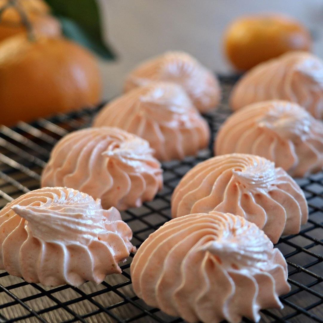 Ингредиенты: ✅150гр пюре мандарина(готовое или сделать самим) ✅100гр воды ✅70гр белка Если вместо белка используете альбумин, то это 8гр альбумина+60мл теплой воды. ✅70гр сахара ✅1г лимонной кислоты ✅корицы на кончике ножа ✅9г агара ✅200гр сахара ✅0.5 ч.ложки молотого кардамона ✅Щепотка мускатного ореха ✅Сахарная пудра Мандарины помыть, почистить, убрать косточки и пробить блендером. Пюре готово! В сотейник поместить пюре мандарина, добавьте агар, корицу или другие специи по вкусу (а можно сделать без них) , воду и сахар 200г. Поставьте варить. Как только смесь закипит, убавьте огонь на средний и варите 4 минуты постоянно помешивая. Параллельно начинайте взбивать белок, постепенно добавляя сахар(70гр) с лимонной кислотой. Взбивать до стойких белоснежных пиков. Если сироп уже сварился, а белки не взбились, то просто отставьте сотейник и по готовности белка снова просто доведите сироп до первого пузырька от кипения, и вливайте в белок. После того как влили сироп массу нужно мешат