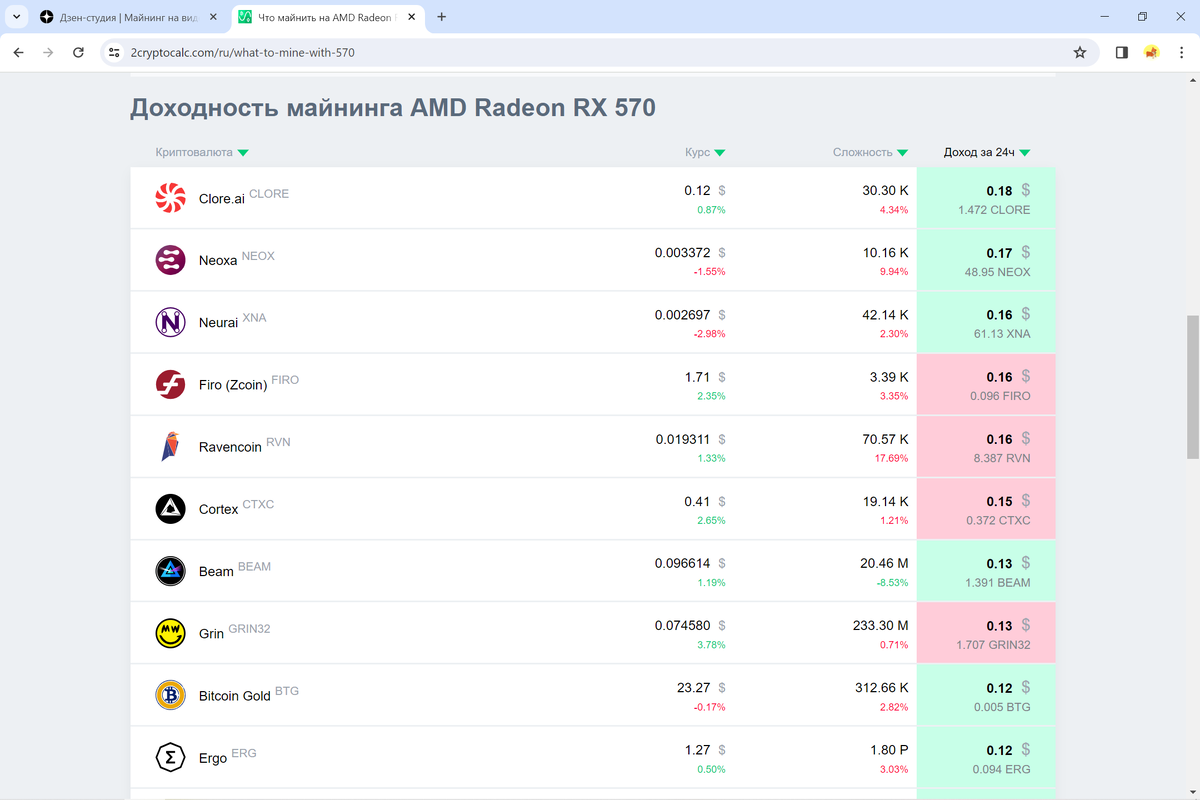 Свои карты выключил уже почти полтора года назад, через месяц после "ПОСа" эфира. Доходность упала тогда с 1$ до 10 центов в сутки с одной карты. Долго доходность оставалась примерно на таком низком уровне. Карты у меня старые, поэтому лежат. При таком заработке смыла нет жечь столько электроэнергии. Максисмум можно было выйти в ноль. Но прошел год. Курс биткоина выше в два раза. Пора бы посмотреть на цены\прибыль\окупаемость. В наличии у меня только старые амд от 470 до 580 есть как 4гб, так и 8гб версии. Как-то так сложилось что мне было проще их настроить на RaveOs, вот их покупал. И ещё ферма на 8 карт 1060. Купил её прямо перед POS, не верил что он всё-таки случится. Оказалось очень зря. Минус 60 вмороженных тысяч :( Открываем 2криптокальк и видим: Из того что я помню год назад - рэйвен и эрго. Доходность чуть выросла. Было 0.12 и 0.10, стало 0.16 и 0.12. Но рэйвен перестал майниться на 4гб карточках. В топе сейчас другие, малоизвестные мне монеты. Надеюсь что проблем с пулами и м