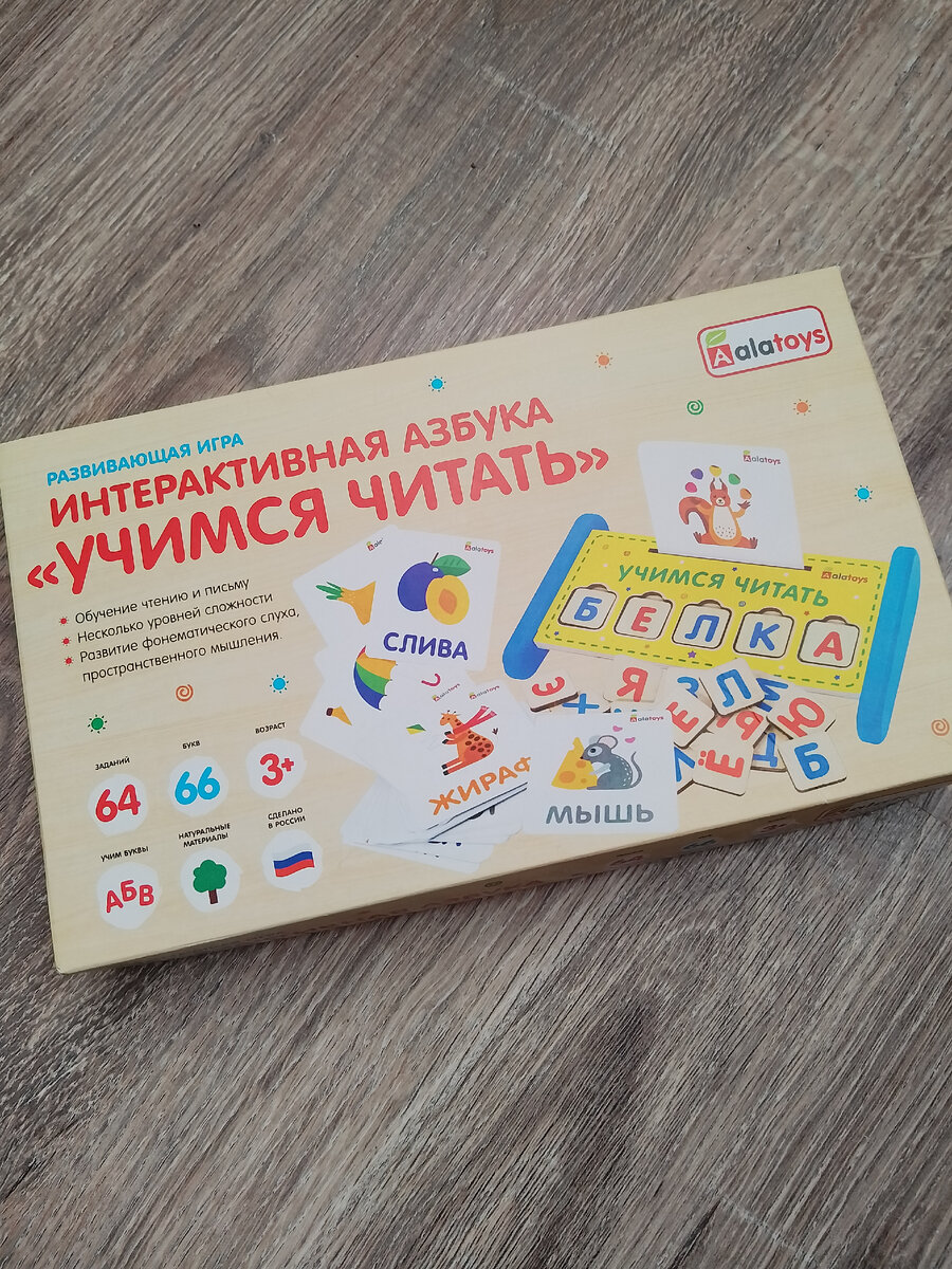 Сегодня хочу рассказать про игру, которую я купила своей дочери (5 лет), для того чтобы изучать буквы и составлять слова. Игра называется интерактивная азбука "учимся читать" В комплект входит основание, набор из 66 фишек с буквами и 32 двухсторонних карточек с заданиями. Как вы уже поняли, цель игры сложить слово из фишек с буквами в ячейки основания, согласно заданию на карточке Особенно хочу отметить что буквы гласные красного цвета, а согласные синего, чтобы ребенок учился различать Не могу ни добавить, как приобрести эту игру с максимальной выгодой. Сейчас её можно купить в детском мире по промокоду с 40% скидкой Кроме этого можно воспользоваться еще одним лайфхаком с начислением 500 бонусов: в профиле добавить детей и их даты рождения (можно добавлять до 5 человек), проверять никто не будет, я проставила даты когда делаю основные закупки одежды или к др подарки. Итого еще 20% спишем бонусами. А если еще оплачивать картой которая начисляет кэшбэк, то можно еще копеечку сохранит
