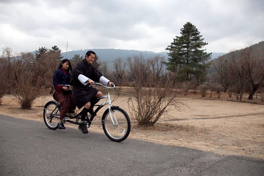 01. Начнем с короля. Сейчас королевством руководит Джигме Кхесар Намгьял Вангчук - это пятый король Бутана. Вступил на трон в 2006 после отречения его отца, четвёртого короля Джигме Сингье Вангчук в его пользу. Местная пропаганда с упоением рассказывает, что король "свой парень". Он живет в маленьком одноэтажном домике, ездит на велосипеде со своей женой (по совершенно пустым дорогам… ага), постоянно встречается с народом.