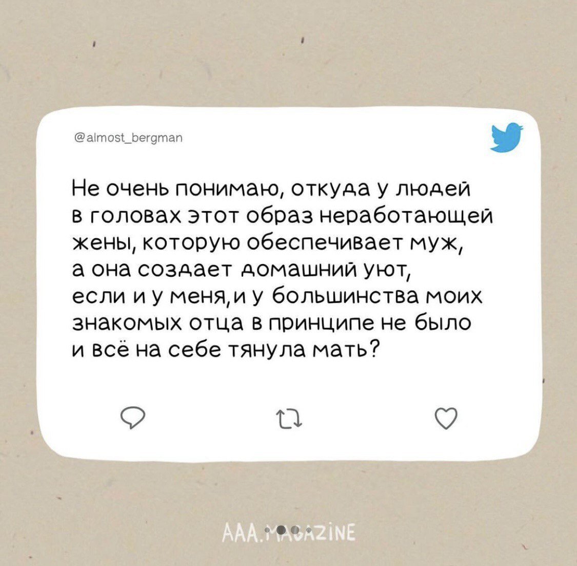 — До сих пор реагирую на отцов, которые меняют памперсы и возятся с младенцами, а ведь это норма. Это у нас не норма… И ещё у нас восхищаются тем, кто дружит после развода и помогает. А ведь и это нормально.