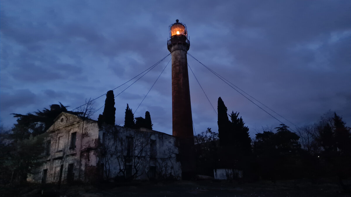Всем привет! Мы часто вечерами выезжаем в Сухум – гуляем по набережной и ходим в театр! Да-да, в театр! Государственный русский театр драмы Республики Абхазия имени Ф. А. Искандера. Сайт: https://rusdram.org/. Но лучше следить за событиями в телеграм-канале https://t.me/rusdramapsny. Сами посчитайте, вечером выехать из Адлера в Сочи сложно из-за пробки. И по времени 2 часа, минимум. До Сухума с учетом границы те же 2 часа! В этот зимний вечер мы чуть-чуть изменили маршрут, чтобы полюбоваться Сухумским маяком – одной из самых недооцененных достопримечательностей Черноморского побережья. Сухумский маяк – это уже второй маяк на Сухумском мысе (река Гумиста очень постаралась намыть крупный и красивый мыс). Первый маяк просуществовал совсем недолго. Был построен в 1851 году. Уничтожен во время русско-турецкой войны 1853-1856 гг. После завершения войны по заказу Департамента навигации военно-морского флота во Франции был изготовлен новый металлический маяк. Летом 1861 года его перевезли на с