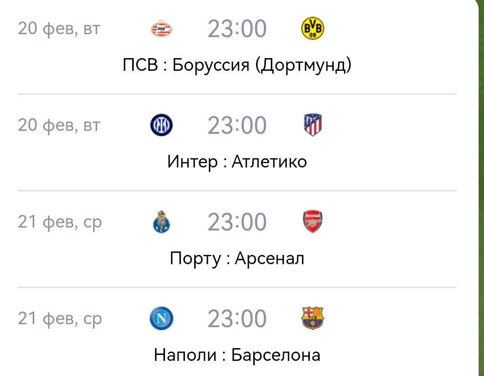 В этом году групповой этап стал интереснее, чем 1/8 ЛЧ. Как минимум из за матчей Наполи и Реала, из за игр с Ман-Юнайтед и тд. 1/8 получилась достаточно скучная: Самые интересные пары: Псж-Сосьедад, Наполи-Барса и Интер-Атлетико. Разберем сначала 💙❤️Барселона - Наполи.💙🤍 Как мне кажется, Наполи переедет Барсу, поскольку Хави "разучился управлять" командой, как в матче с реалом., поскольку поставил ВЫСОКУЮ ОБОРОНУ! Но есть и обратная сторона! Барса может быть воодушевлена уходом тренера и рвать всех, как Ливерпуль, поскольку ситуации одинаковые. Тут скорее решит удача и настрой команд. Далее идёт 💙🖤Интер - Атлетико❤️🤍. Тут тоже все интересно. Интер рвет всех в Серии А, а Атлетико в ЛаЛиге. Самые яркие примеры это матчи Интера с Монцей (5:1), Фиорентиной (1:0) и с Наполи (1:0) и игры Атлетико с Реалом (4:2), Валенсией (2:0) и с Райо-Вальекано (2:1). На мой взгляд, в 1/4 пройдет Интер, поскольку опыт в Еврокубках больше. И наконец 💙❤️ПСЖ - Сосьедад💙🧡. Сосьедад вышел с 1-го мест