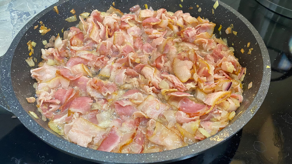 Вкусная, нежная и ароматная каша с жареным луком и беконом. Прекрасно разваривается и получается нежной со сливочным вкусом. Быстро и доступно, и оооочень вкусно! Ингредиенты: 🔸Горох колотый - 200гр 🥓Бекон сырокопченый - 250 гр 🧈 Сливочное масло - 20 гр 🧅 Лук репчатый - 1 шт Приготовление: 1) Горох замочить в холодной воде на 2-3 часа (лучше на ночь). 2) Лук нарезать квадратиками и обжарить на растительном масле. 3) Бекон нарезаем произвольными кусочками и добавляем в сковороду к луку. Перемешивая обжариваем лук в сковороде с беконом до прозрачности, после чего снимаем сковороду с плиты. 4) Очень хорошо промываем разбухший в миске горох под проточной водой, после чего выкладываем его в подходящую для приготовления кастрюлю. Наливаем воду и доводим до кипения. Снимаем образовавшуюся пену с закипевшего в кастрюле гороха. Солим по вкусу. 5) Когда горох разварится полностью, взбиваем его блендером до однородности, добавив 20 гр сливочного масла. 6) Добавляем в горох зажарку из бекона