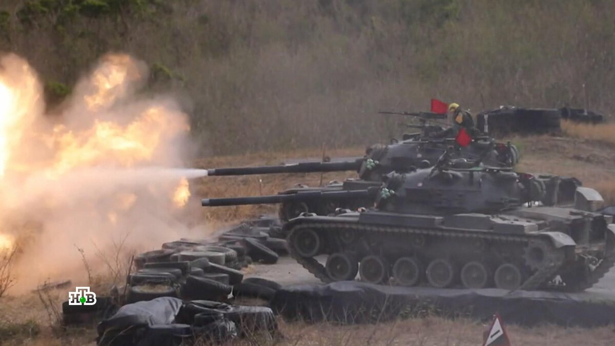 [ Смотреть видео на сайте НТВ ] Задействовав чуть ли не весь свой арсенал, тайваньские военные объявили «репетицию войны» — именно так местные журналисты назвали масштабные двухдневные учения, где военные острова вновь имитировали удары по армии КНР. Тайваньские военные с гордостью демонстрировали журналистам свои запасы американских боеприпасов. Контракт на производство еще 50 ракет «воздух-земля» специально для Тайваня Пентагон заключил на днях с одной из крупнейших оборонно-промышленных компаний США. В Пекине тут же предупредили, что играющий с огнем рискует сжечь себя сам. Чэнь Биньхуа, представитель канцелярии по делам Тайваня при Госсовете КНР: «Антикитайские силы в США хотят разыграть „тайваньскую карту“, подливая масла в огонь и подвергая Тайвань опасности. Тайваньские власти пытаются добиться отделения Тайваня силой и превращают тайваньскую молодежь в пушечное мясо для осуществления своего плана». С этого года на Тайване увеличен срок обязательной службы в армии — теперь это м
