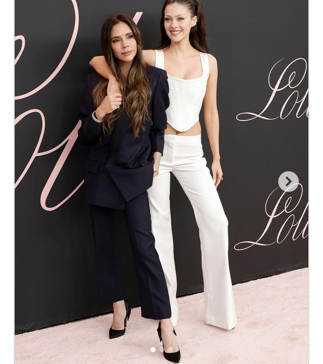 Таким образом, жена Бруклина Бекхэма была одета в белое, в корсете и брюках в стиле девяностых. На фотоколле мероприятия невестка Дэвида и Виктории Бекхэмов была в отличном настроении .