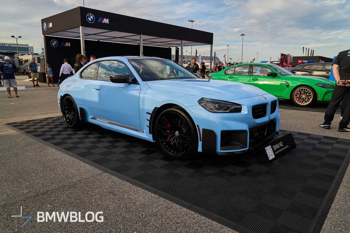 На автогонках "24 часах Дайтоны 2024" BMW продемонстрировала несколько автомобилей, включая X2 M35i. Новый M2, но это не просто G87. Окрашенное в эксклюзивный синий цвет Zandvoort Blue, спортивное купе оснащено множеством деталей M Performance Parts и отличается особенностью - механической коробкой передач. Автомобиль украшают эмблемы в стиле ретро, появившиеся в 2022 году, когда подразделение M отмечало свое 50-летие.