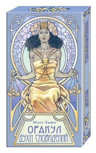 Узкие тропки снов Издательство Авваллон-Ло Скарабео выпустило на русском языке изначально американский (оригинал – издательство U.S.Games Systems, 2007) Оракул Духи Сновидений, автор – художник Мэтт Хьюз. Издательская аннотация сразу предупреждает, что эти карты являются колодой-компаньоном к «Таро Эфирного видения» того же автора. Но эта колода вполне самоценна и самодостаточна для пользователя, не располагающего упомянутым Таро. Тем более, что издатели предупреждают и советуют просто довериться образу на одной из 32 карт и следовать в тонкие миры, куда поведет персонаж-проводник. А четыре стрекозы на рубашке каждой карты призывают путника к легкости на путях, ведь миры снов и воображения – миры тонкие, и именно на прозрачных радужных крыльях туда только и можно пролететь. На этих путях встретятся и символические животные – Слон, Конь-паломино (это порода лошадей такая))), и Морская Черепаха, Олененок и Орел-Гарпия, и Тигр. Звери имеют и реальные прототипы, и чисто мифические, как, на