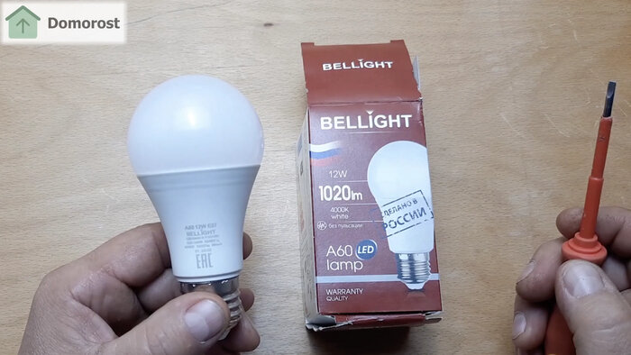 Итак, мои коллеги вместе со мной оценили светодиодную лампочку от производителя беллайт и она оказалось не самой лучшей... Надеюсь этот пост поможет вам сделать в будущем правильный выбор. Что же, давайте разбираться вместе - что же пошло не так? Прежде всего про стоимость - 56 рублей. Это очень дешево, чуть ли не самая дешевая лампочка, которую нашла наша система, с заданными параметрами 12Вт Е27 А60 4000К. Обещают мощность в 12 Вт. Правда это или нет? В сети привычные 220 Вольт. При первом включении мощность 10,6 Вт. При увеличении напряжения до 230 Вольт - 11,7 Вт. Это уже заметно ближе к 12 Ваттам, которые объявил производитель. Коэффициент мощности у этой лампы 0,6. Расходы за год 185 рублей при работе лампы 8 часов в день и при тарифе 5.38 рублей за киловатт. Цветовая температура 3868К и плохой индекс цветопередачи — меньше 80, а точнее 77,7. Ну а свет от этой лампы можно считать абсолютно белым. Что с пульсациями света от этой лампы? Смотрим. Пульсация где-то в пограничной зоне.