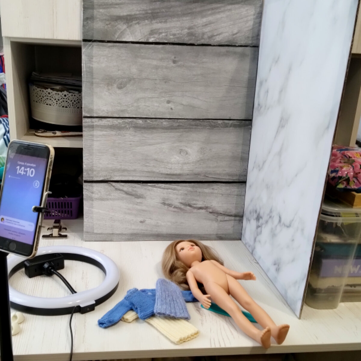 Ставлю штатив, фон, выставляю ракурс, все фиксирую. Одеваю кукол, ставлю в позу, ещё то удовольствие 🤪.