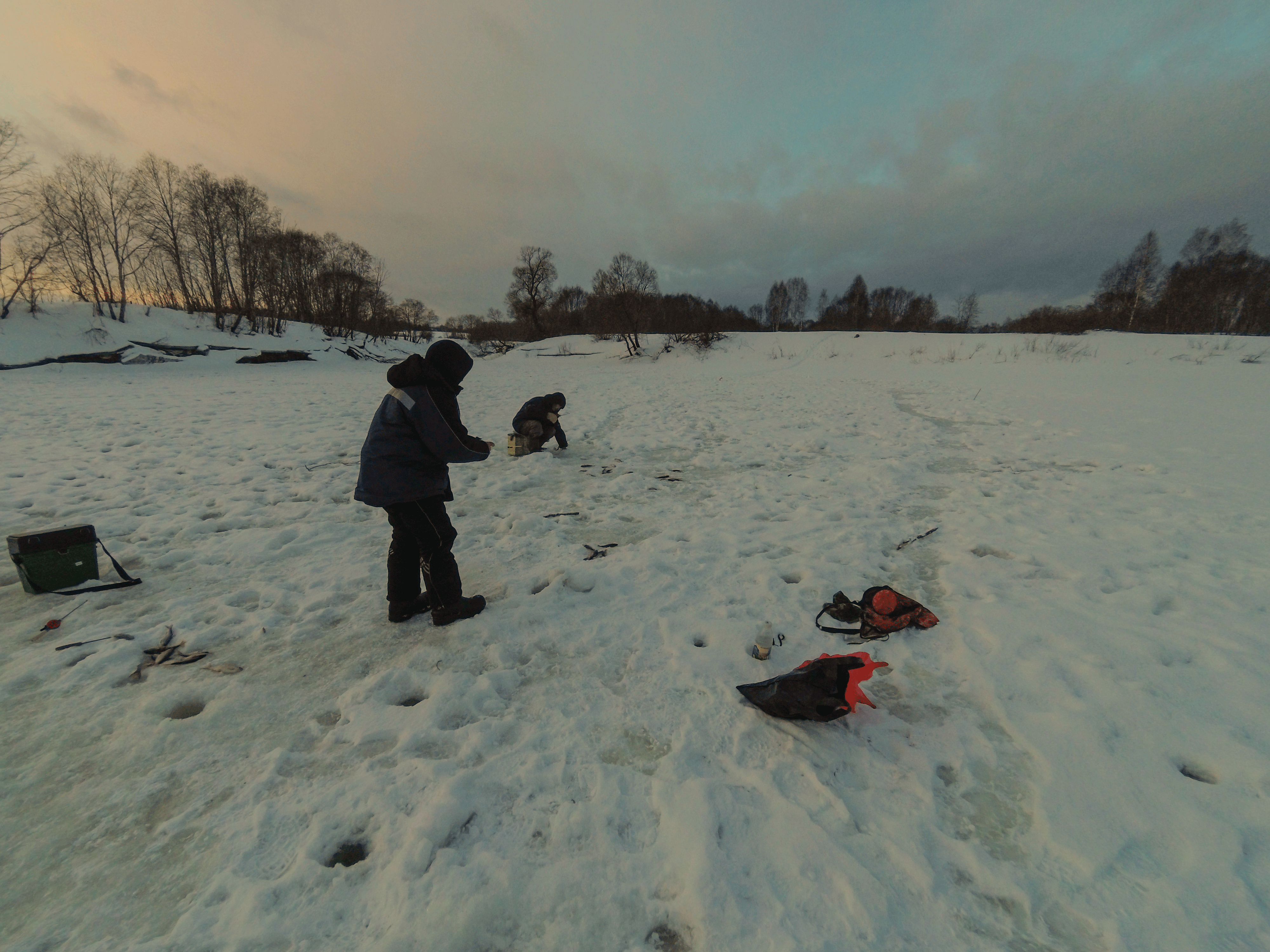 Ещё в предрассветной серости мы на льду, наши позавчерашние лунки не заняты - всё впереди. Расчищаем незамёрзшие, свежие бурить пока не нужно, и всё - можно начинать. Прохожу первую, третью - ни поклёвки. Можно сходить под берег, там в прошлый раз у соседей тоже ловилось. На второй по берегом зацеп. А у меня удочка с последним уловистым "лакиджоном"! Пробовал-пробовал, возился-возился - ни в какую. Так и не отцепил((