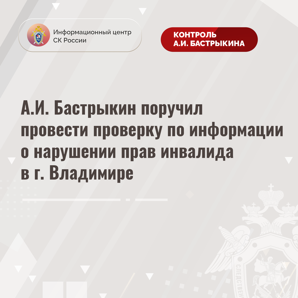 #СледственныйКомитет #СКРоссии #СКР #ИЦСКР #Информационныйцентр #АлександрБастрыкин #ПредседательСКР #КонтрольПредседателяСКР #КомментарийКонтроль #ВладимирскаяОбласть