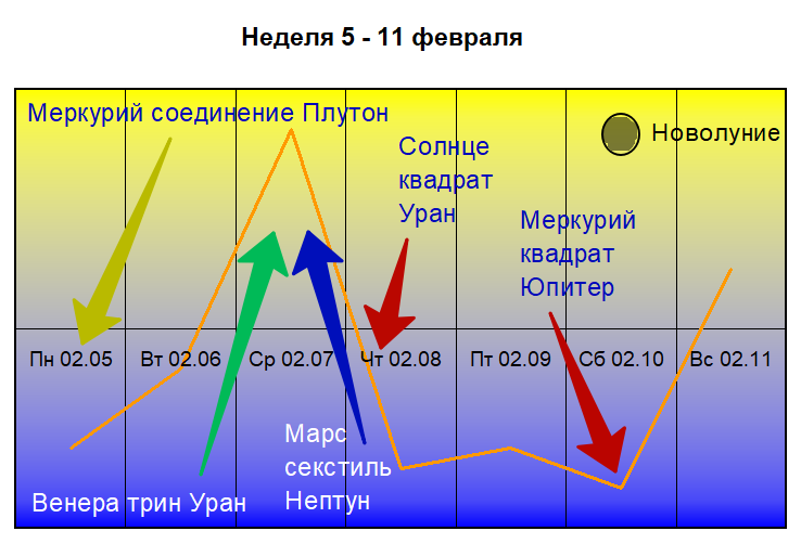 ГОРОСКОП ЗДОРОВЬЯ на НЕДЕЛЮ 5 – 11 ФЕВРАЛЯ Внимание В прогнозе даются советы и рекомендации связанные с консервативным лечением. Не с хирургией, и тому подобными активными вмешательствами в дела организма. На это и следует ориентироваться в борьбе за здоровье. Луна до 10 февраля в фазе способствующей борьбе с хроническими заболеваниями, подведению итогов борьбы за здоровье за месячный период, избавлению от вредных привычек и мониторингу скрытых пока заболеваний. После 10 числа Луна будет способствовать началу нового месячного цикла борьбы за оздоровление и профилактику. Ищите и пробуйте новые упражнения, диеты, лекарства и методики. Действуйте постепенно, но неуклонно… 5 и первую половину 6 февраля Луна в Стрельце. Следите за проблемами кровообращения в основном в нижней части тела. Массажируйте область печени, исключите из рациона тяжёлую пищу и алкоголь, потому что может страдать печень и желчный пузырь. Укрепляйте упражнениями мышцы бёдер и ягодиц. Вторую половину 6, 7 и большую час