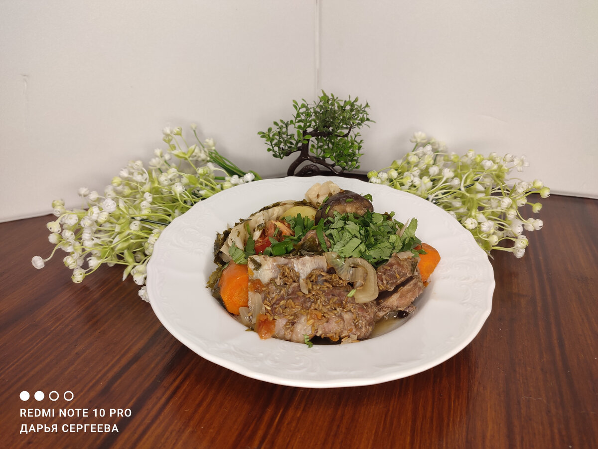 Удивительное блюдо. Простое по составу и способу приготовления - мясо, овощи, специи, никакого масла или воды - все сложить, накрыть крышкой и не трогать)