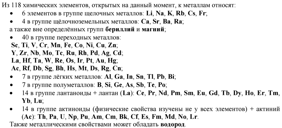 Металлами называют химические элементы, в простых веществах которых наблюдается металлическая химическая связь.