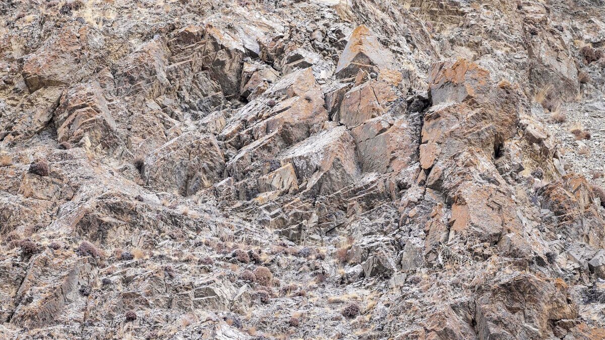 Снежный барс спрятался на горе — его почти невозможно заметить