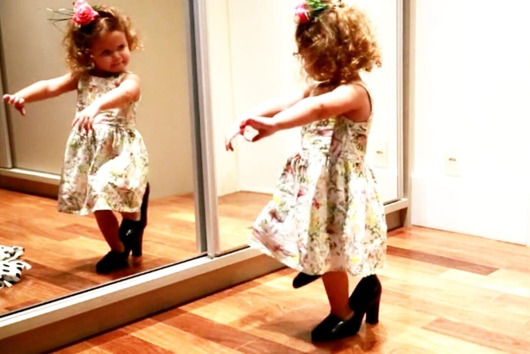 Зайдя в дом, услышал заливистый смех Машки. Поспешил в комнату. И сам еле не рассмеялся вслух. В центре комнаты стояла Анюта в платье Лины. В туфлях на высоком каблуке. Судя по цвету её мордашки, она пыталась наложить макияж. На голову не забыла прицепить бант.