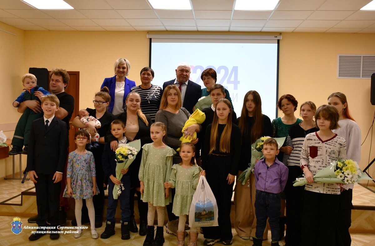 Сортавальской семье Виталия и Лидии Ивановых в этом году исполняется 55 лет. «Их совместная жизнь может служить прекрасным примером для подражания», — рассказали в сообществе. Первый горожанин 2024 года — Тихон — родился 1 января в семье Маргариты и Всеволода Ермошиных. Кроме того, радостное событие произошло и в семье Екатерины и Валерия Ибатулиных — родился седьмой ребенок, дочь Таисия. В зале также присутствовали сортавальцы, принявшие в этом году значимое и ответственное решение принять детей под опеку. Так, ребенка в семью приняла Анастасия Слынько, а Вера Парфенова — троих детей.