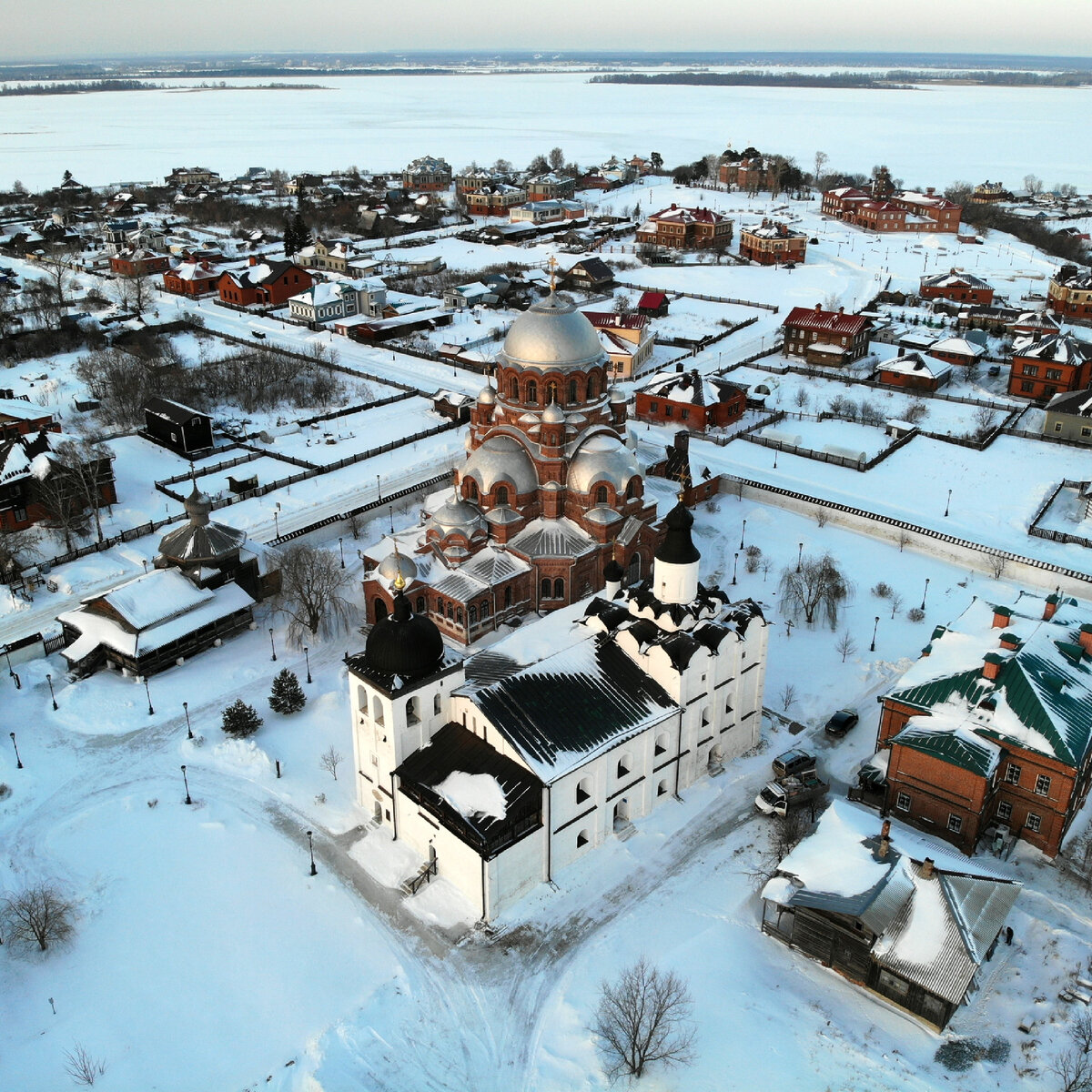 Зимы в Казани довольно холодные и снежные, поэтому может показаться, что лучшее решение — это сидеть дома и никуда не выходить. Но если вы приехали в столицу Татарстана не на ПМЖ, а чтобы отдохнуть, тогда стоит лишь теплее одеться, чтобы не мерзнуть, и вперед — знакомиться с Казанью. В принципе, в городе и окрестностях туристические маршруты открыты круглый год. Но есть особенные места, где зимой очень красиво. 1. Остров-град Свияжск. Он чем-то похож на остров Буян из сказки Пушкина. Есть легенда, что крепость, которая стоит в Свияжске, построена еще во времена Ивана Грозного, который не знал, как начать строительство под носом у своих врагов. Поэтому приказал построить крепость под Угличем, а потом по реке сплавить ее в Свияжск. Островом город стал во времена Советского Союза, когда часть земель затопило водами Куйбышевского водохранилища. Сейчас город соединен с остальными населенными пунктами насыпной дамбой, по которой проходит дорога. Но не только своей историей знаменит Свияжск.
