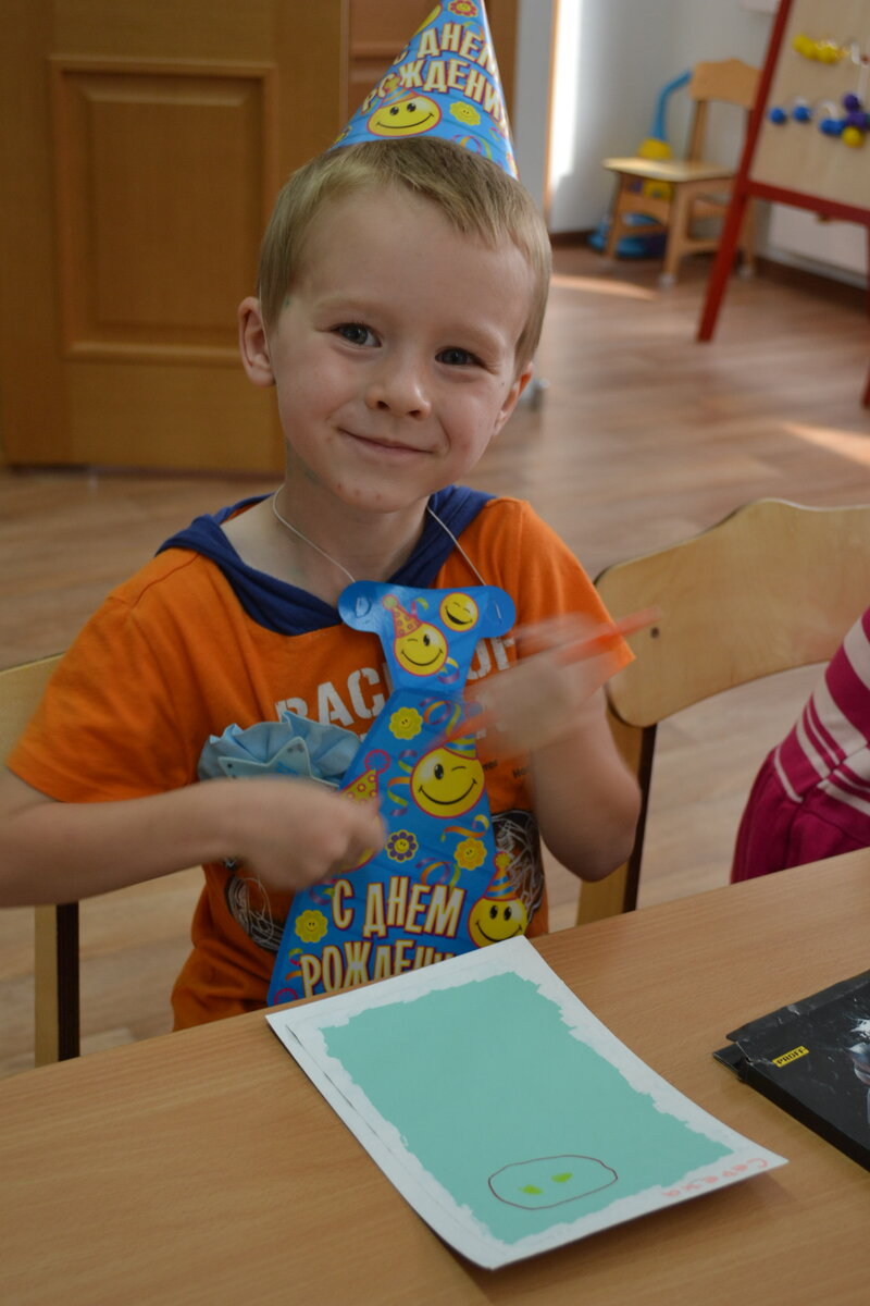 Моя мама вместе с бабушкой украсили все гирляндами и воздушными шариками. Мы играли, танцевали и водили хоровод. Мама проводила конкурсы и тянула меня за уши☺️. А ещё были вкусные угощения, больше всего ребятам и мне понравились "кейк-попсы", которые моя мама сделала сама. А на память мы подарили всем памятные вещицы о празднике, а все ребята (и Ольга Викторовна) нарисовали мне поздравительные открытки. Всем очень понравился праздник, особенно мне!😊 Празднование дома После детского сада мы продолжили отмечать мой день рождения дома. Приезжал дедушка, он мне подарил роликовые коньки. Я пробовал кататься, но вот что-то не пошло дело... Празднование на даче А на дач