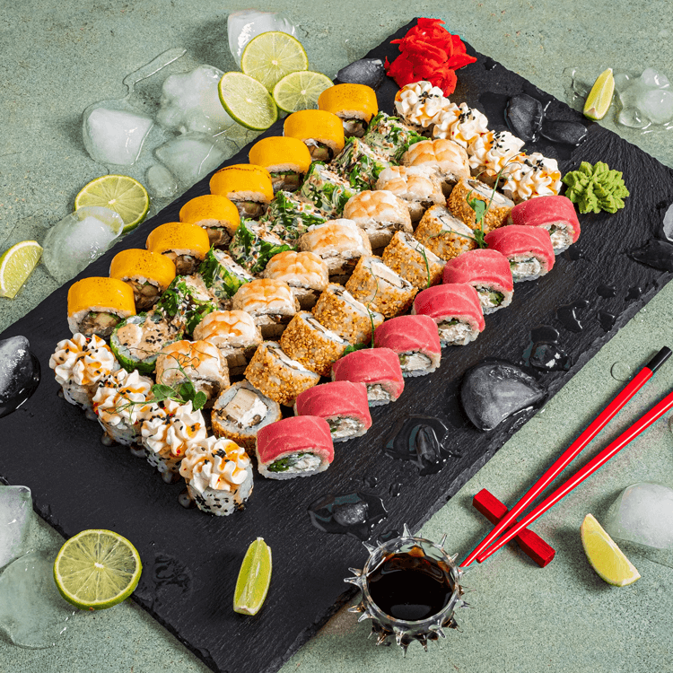 Освободите выходной вечер от готовки:) Как мы добились таких цен? Все просто. Это ради вас! Мы прогнули цены у нескольких компаний, которые готовы предоставить отличные, вкуснейшие, огромные суши по самой выгодной цене с нашим промокодом. Смотрите сами! Смотрите состав всех суши-сетов здесь! - Промокод дает право на скидку до 79% на суши-сеты, горячие блюда, супы, салаты, роллы, гунканы и нигири от "ART FOOD" - Стоимость суши-сетов: от 14 р. от 46 р. Сет "МАКЕБА👯♀️" (48 шт, 1430 г) Фэст до 4.02❤️ самовывоз: 35 р. 139 р. доставка: 41 р. 139 р. Состав: - ролл в тунце со сливочным сыром и огурцом (8 шт) - ролл в чеддере со сливочным сыром, окунем терияки, огурцом и яблоком (8 шт) - ролл в креветке и кунжуте со сливочным сыром, японским омлетом и шиитаке (8 шт) - ролл в чуке со сливочным сыром, копченым цыпленком, такуаном, кунжутом и ореховым соусом (8 шт) - ролл в кунжуте со сливочным сыром, краб-миксом, такуаном, майонезом и сладким чили соусом (8 шт) - ролл в кунжуте кимчи со сливо