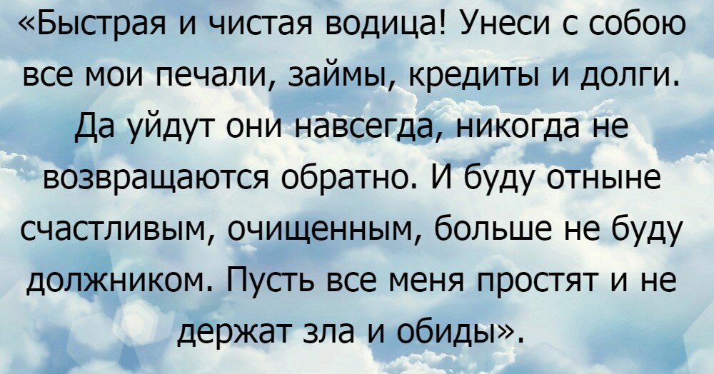 Заговор от долгов и кредитов на воду
