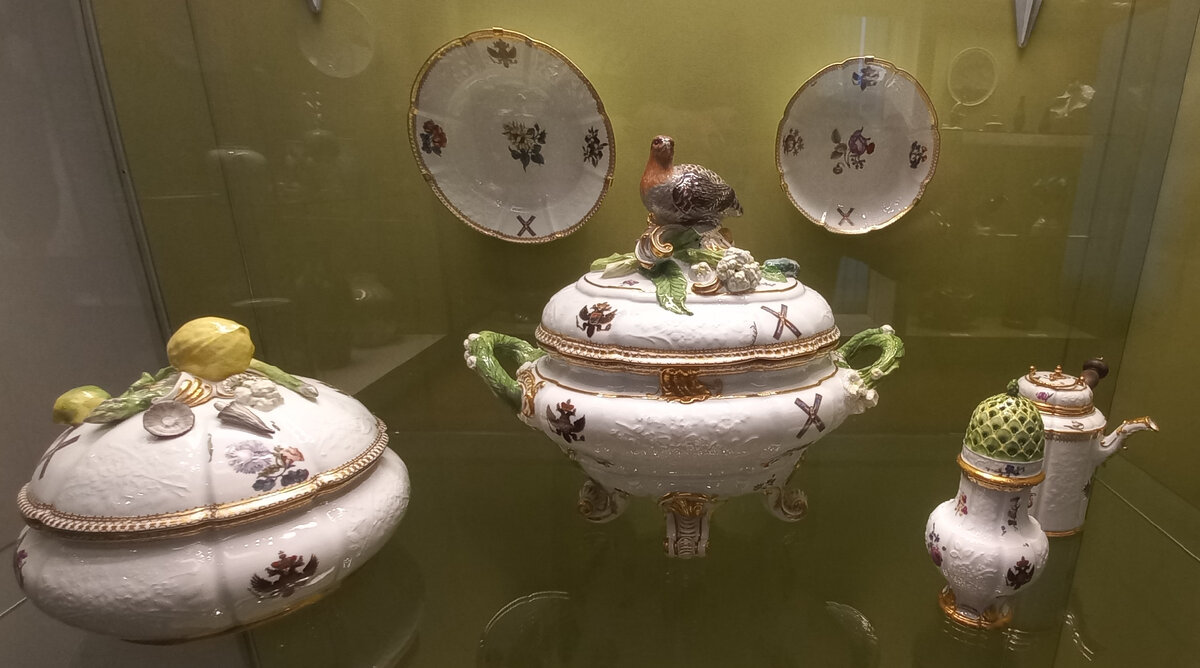 В музее демонстрируются предметы Андреевского сервиза, который был подарен Августом III императрице Елизавете Петровне в 1745 году, производства мейсеновских мастеров. Свое название он берет из изображённого на всех предметах синего креста с распятым апостолом Андреем. Пользовались этими приборами обычно раз в году на день святого апостола Андрея - 30 Ноября.
