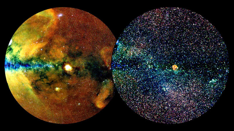 Изображение: @eROSITA-Konsortium Опубликованы результаты первого каталога обзора неба, которые были осуществлены благодаря рентгеновскому телескопу eROSITA. Телескоп установлен на российской космической обсерватории "Спектр-РГ". eROSITA обнаружил почти миллион источников различных событий, включая скопления галактик, сверхновые, сверхмассивные черные дыры и многие другие загадочные объекты, которые теперь предстоит изучать. Напомним, обсерватория «Спектр-РГ» стартовала 13 июля 2019 года на ракете «Протон-М» с космодрома Байконур . Телескоп eROSITA вместе со своим российским аналогом ART-XC начал первый обзор неба 12 декабря 2019 года, он продолжался до 11 июня 2020 г. Были завершены четыре из восьми запланированных обзоров, а данные первого обзора включили в каталог eRASS1. За полгода работы телескоп eROSITA зарегистрировал 170 миллионов рентгеновских фотонов и с высокой точностью определил их источники. "Это потрясающие цифры для рентгеновской астрономии, - заявил Андреа Мерлони, руко