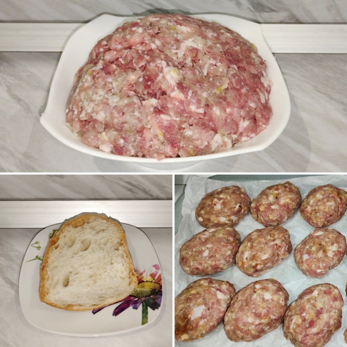 Всем хозяйкам хочется облегчить себе жизнь. Предлагаю вам три готовых полуфабриката из домашних продуктов. Один занятый вечер обеспечит вас тремя сытными ужинами. Ингредиенты: Для начала фарш смешаем с перекрученным или мелко нарезанным луком. Затем делим фарш на 3 равных части по 500гр. 1.Котлеты Вымоченный в молоке белый хлеб пропускаем через мясорубку и добавляем к фаршу. Специи: соль, перец, сушеный чеснок. Формируем котлеты. Получается примерно 9 средних котлет. 2. Митболы (фрикадельки) К фаршу добавляем специи: соль, перец, копченная паприка, сушеный чеснок, куркума. Формируем мелкие шарики. 3. Тефтели К фаршу добавляем 2 столовые ложки риса (сырого/отваренного), тертую на мелкой терке морковь. Специи: соль, перец, сушеный чеснок, укроп, базилик, петрушка, куркума, копченая паприка. Приятного аппетита!