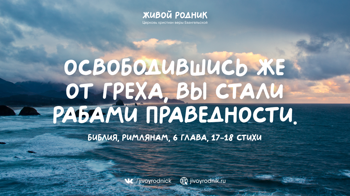 Освободившись же от греха, вы стали рабами праведности. Библия, Римлянам, 6 глава, 17-18 стихи