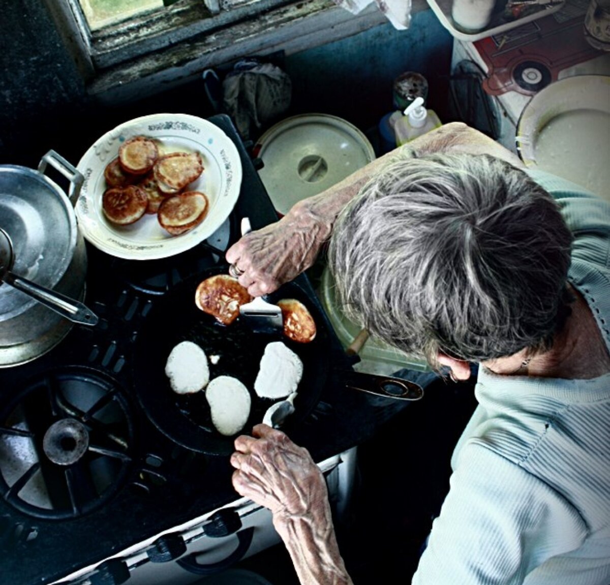Она начала печь оладьи. Руки её дрожали, она никак не могла перевернуть оладушек, нервничала, утирала запястьем набежавшую от жара плиты слезу.