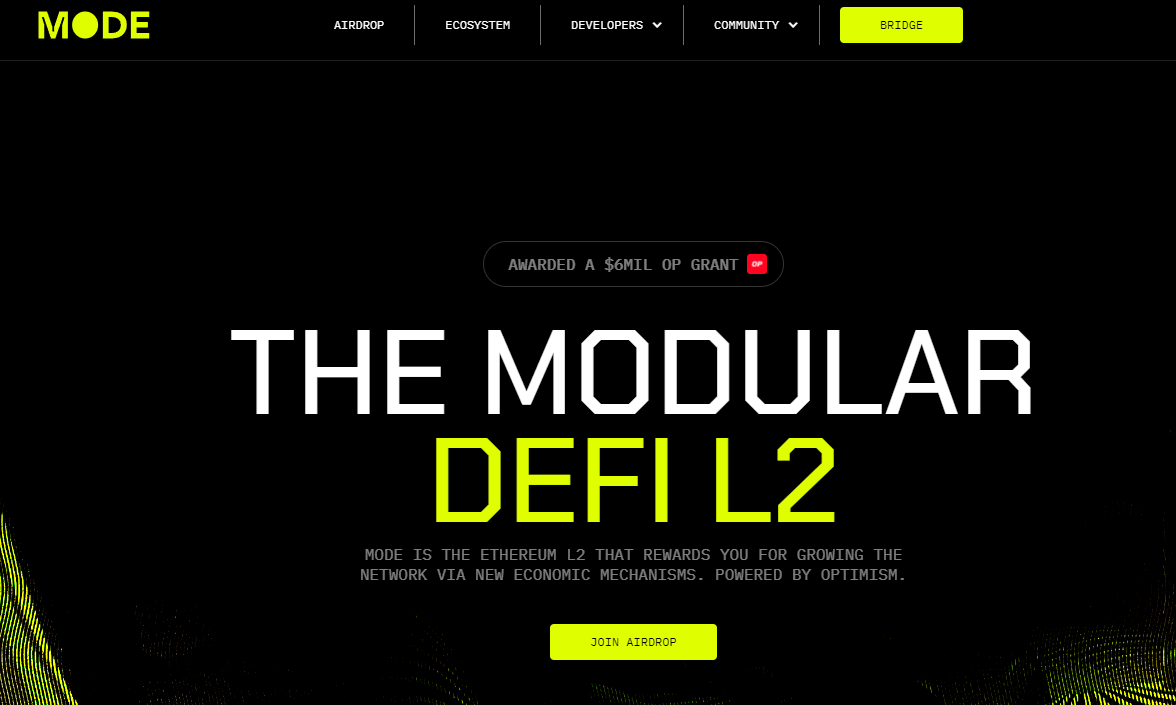 В апреле 2024г. (уже весьма скоро ) пройдет аирдроп MODE. Аирдроп стартовал совсем недавно и блокчейн выдает очки за использование своей экосистемы. причем регистрирую кошелек я сразу получил некоторое количество поинтjd/