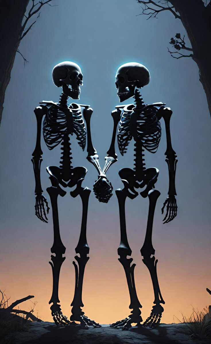 Они пришли к месту, похожему на уличное кафе – зонтик, стол и стулья (если бы не одно но: всё это была сделано из человеческих костей).