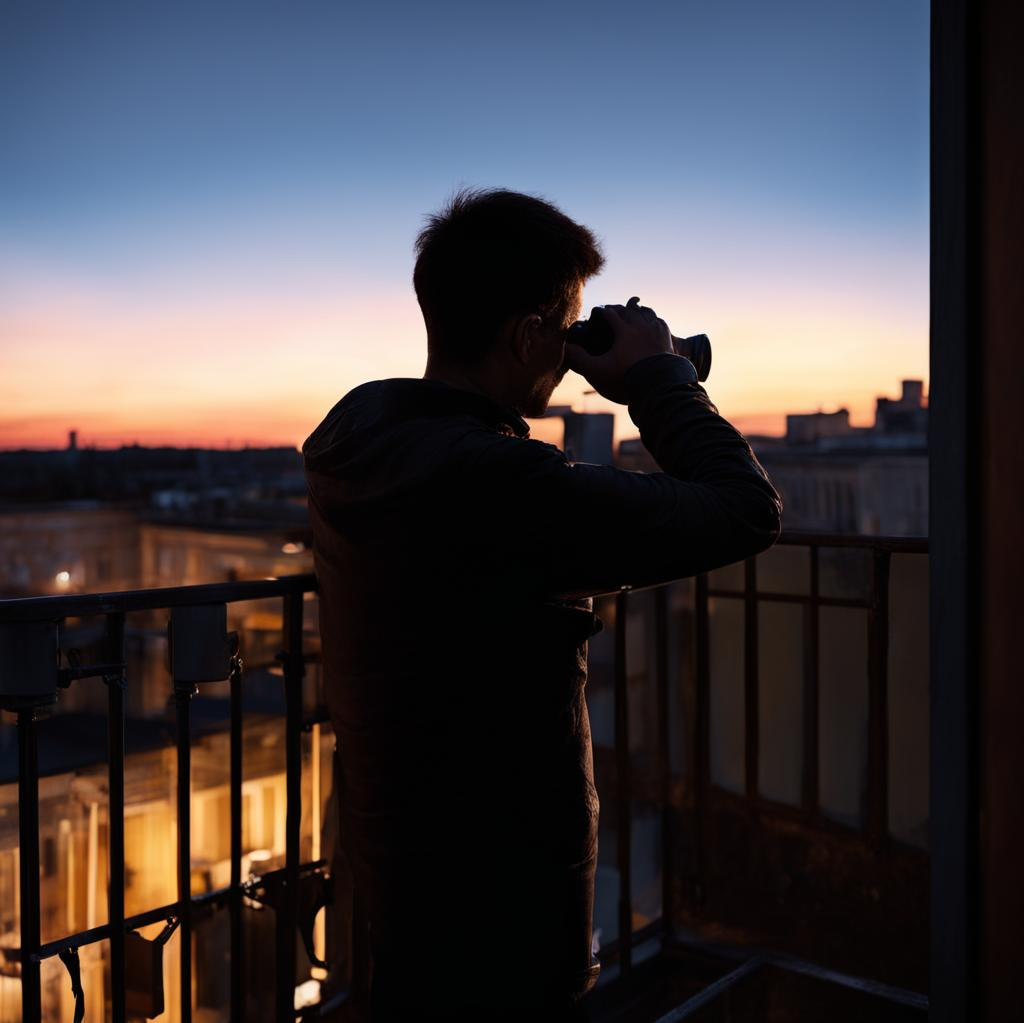 Весело провели время, повспоминали молодость за не хитрым столом да пошли на боковую, а то мне до дома добираться далеко. Друг постелил мне в зале, где как раз была дверь на балкон. И вот решил я перед сном сходить на балкон покурить. Друг уже спал, а я стоял на балконе и вдыхал свежий ночной воздух, свободный от дневной суеты большого города. Докурив, я уже хотел возвращаться, как увидел что на балконном столе лежит бинокль, а в доме напротив так призывно светятся несколько окон. Я не стал думать, зачем моему другу на балконе бинокль, дело его. Меня раздирало любопытство, есть что-то пикантное в том, что бы заглядывать в чужие окна и пусть на секунды, но проживать чужую жизнь. Нет, вы не подумайте, я не извращенец какой. Просто банальное любопытство. Я поднёс бинокль к глазам и стал разглядывать окна напротив. Многие окна были неудобно расположены и что-то разглядеть в них было сложно, другие же окна были темны, там люди явно или были не дома или спали и ничего интересного там не было