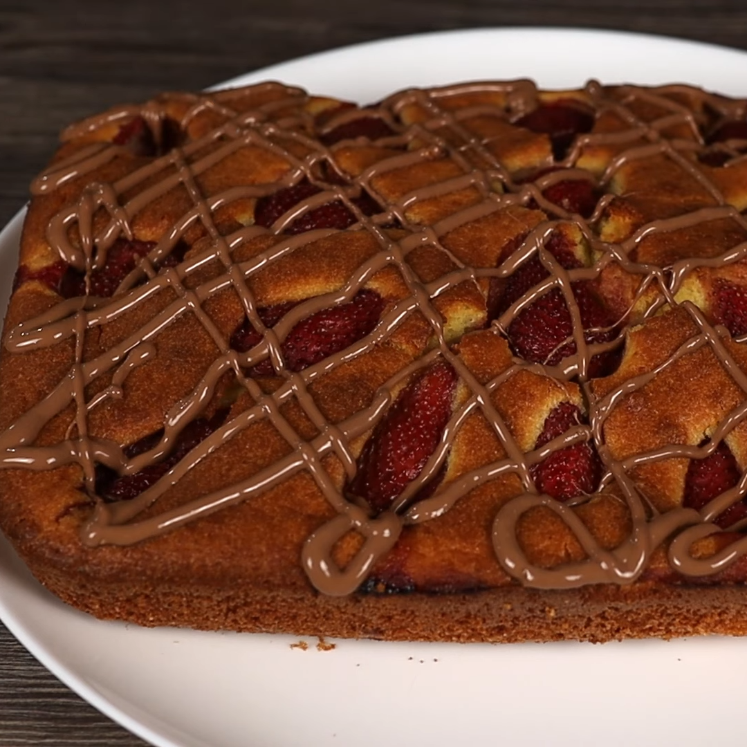 Готовый пирог можно полить растопленным шоколадом.
