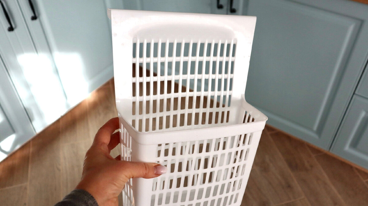 - Пластиковую подвесную корзину можно приспособить куда угодно. Например, на кухне повесить на дверцы мебели и хранить там то, что не вмещается на полках. В ванне она так же пригодится.