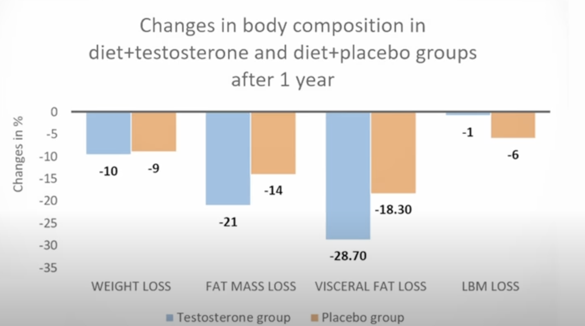Количество увеличения уровня тестостерона после потери жира зависит от исходного количества жировой массы. Исследование, опубликованное в Европейском журнале эндокринологии, показало, что люди с избыточным весом, потерявшие значительную часть жира, испытали повышение уровня тестостерона на 20-50%.