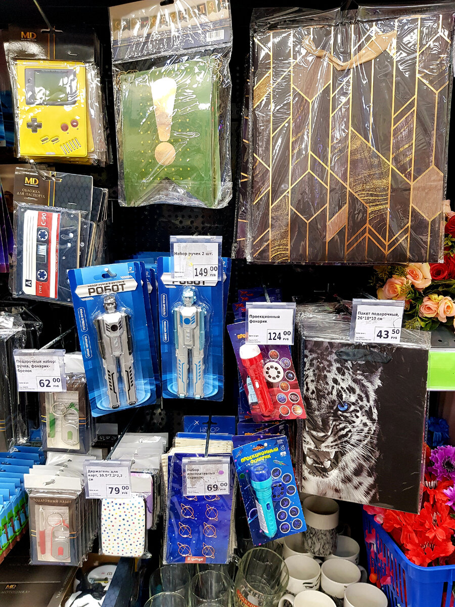 Здравствуйте, дорогие друзья! Спасибо всем моим читателям за отзывы и комментарии. ПишИте, где что купили дешевле, что понравилось, что нет. Чтобы все мы знали, что купить, а что выгодней заказать на Озоне и ему подобных платформах. Так что и впредь жду ваших отзывов. Ну, что же, перейдём к обзору. Каждый день новый завоз, только успевай поворачиваться. Коробки, коробки, коробки. Наконец и в мой Фикс Прайс завезли товары к 23 февраля. Покажу немного. Не буду подробно останавливаться на всяких безделушках. Покажу, что считаю наиболее интересным. Обложка для паспорта, подарочный пакет. И такой Робот - набор ручек, 2 шт. А здесь мне понравился набор формочек для печенья - 87 руб. В наборе 4 штуки. Состав: нержавеющая сталь. Почему бы не купить эти формочки и не сделать вкусный подарок на 23 февраля своими руками?! Здесь мне, кажется, заслуживает внимание эспандер кистевой - 83 руб. Его я бы тоже рассматривала для подарка. Пусть мужчины мускулы накачивают. А вообще - то, он помогает разви